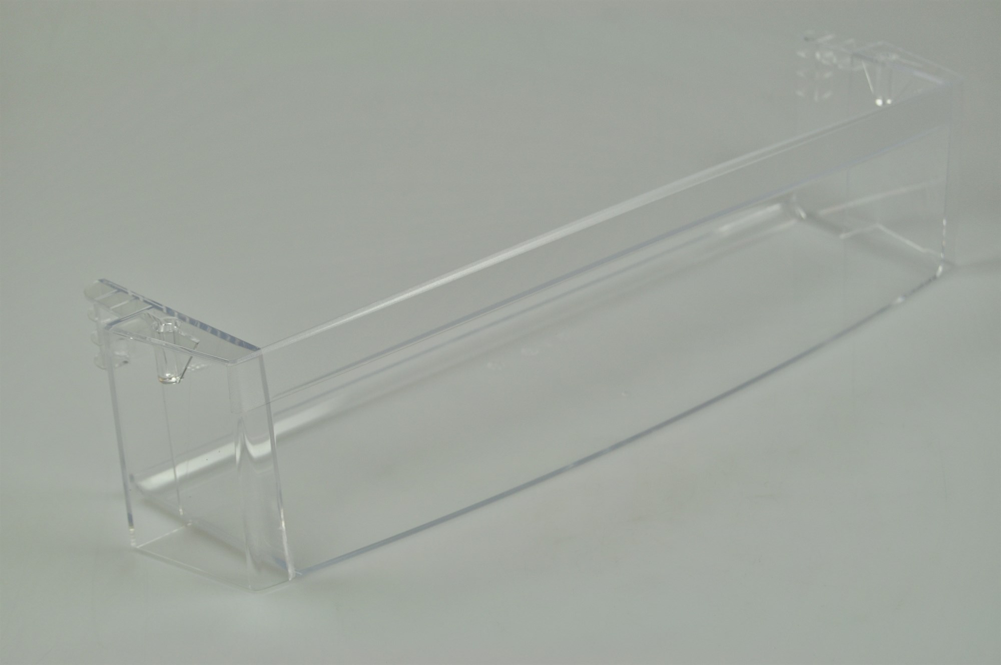 Nedre hylla i kylskåpsdörren, ofta använd som mjölkhylla. Dörrhyllan kan enkelt bytas utan verktyg.