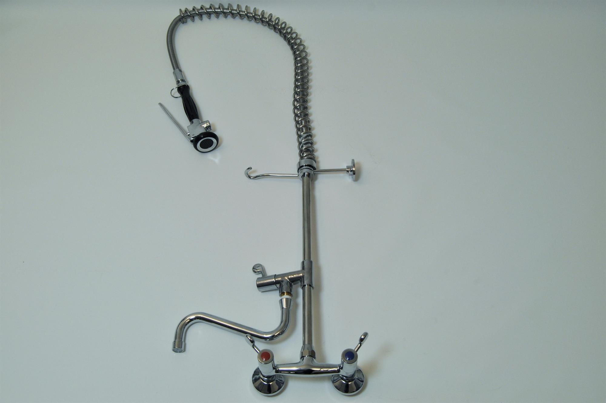 Stor-köksarmatur med 1-handsgrepp duschpistol och vridbar kran. Armaturen har 2-håls väggfäste och ergonomiskt ventilhandtag med 90° öppning och ventiler med keramiska brickor.