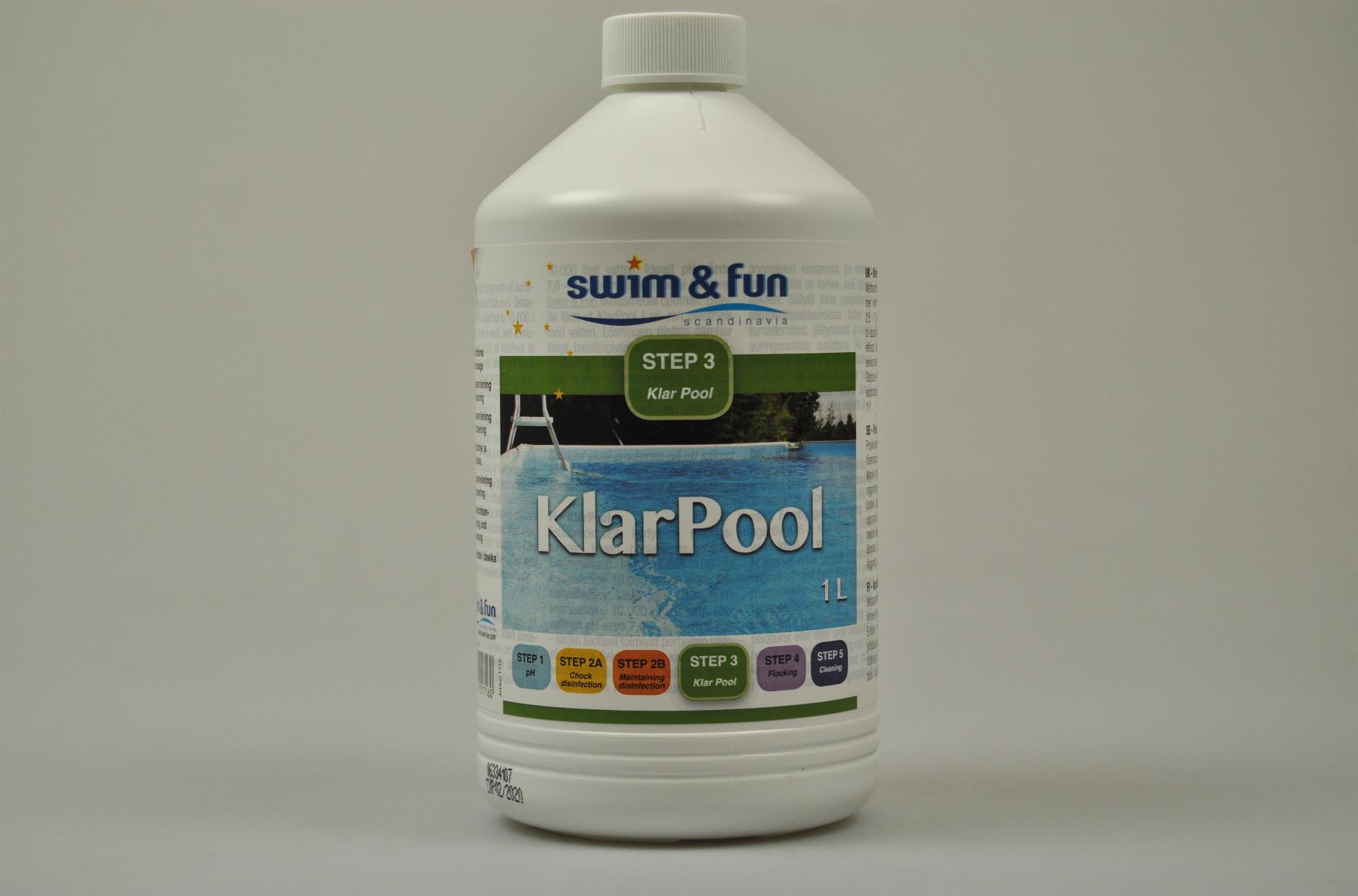 Tillsätt ½ dl KlarPool pr. 10.000 liter vatten 1 gång om veckan för att förhindra beläggningar.