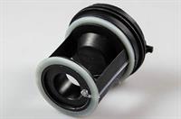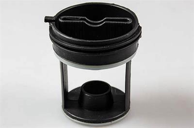 Detta luddfilter för Frigidaire tvättmaskiner kan vanligtvis hittas på tvättmaskinens nedre del, bakom rensluckan. Ett luddfilter fångar små främmande föremål och skyddar avloppspumpen.