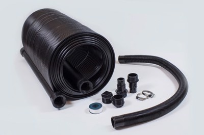 Med detta kompletta solfångaranlägg till frittstående pools med sandfiltersystem, kan du förlänga badsäsongen.